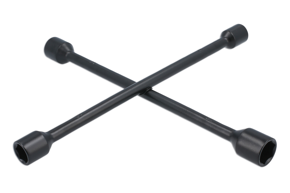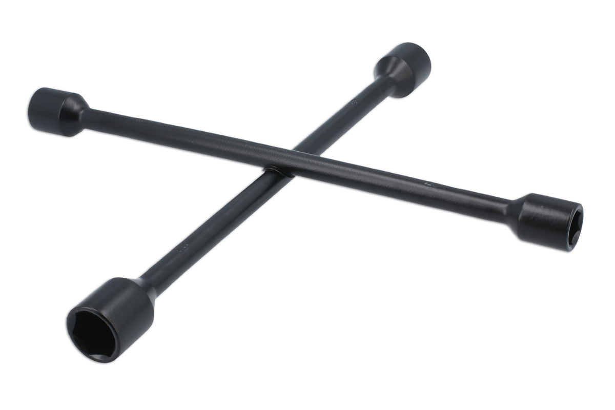 Four way wheel brace to suit the most common sizes of wheel nut: 17, 19, 21, and 23mm. Ideal for keeping with the vehicles jack and spare wheel the design allows for it to be used with a time saving spin action, which cannot be done with a standard L-shaped wheel nut wrench.