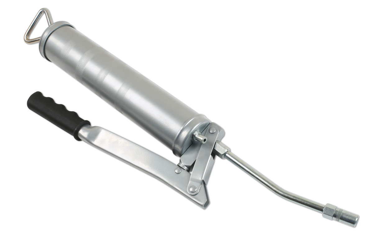 This high pressure grease gun works at 8000psi and has an improved plunger for complete grease removal for both cartridge and bulk grease loading. Takes 400cc cartridge.