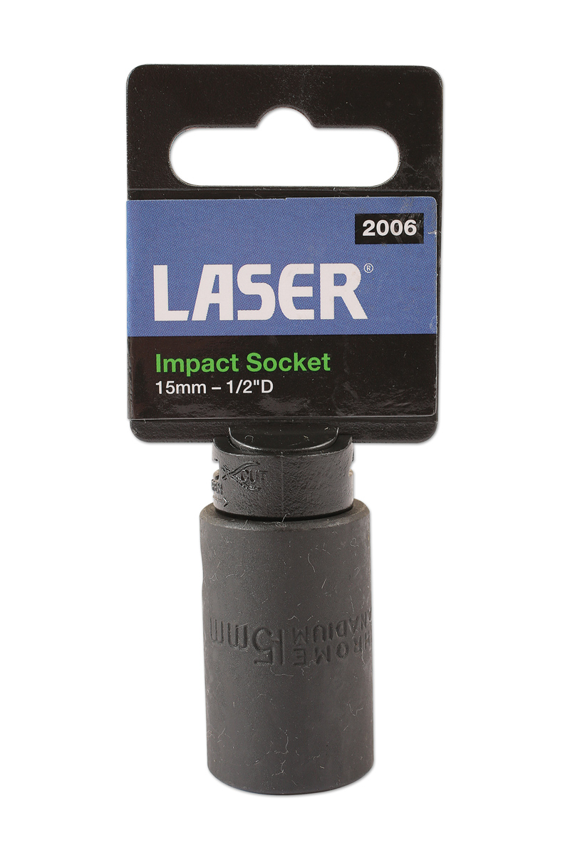Standard 15mm single Hex 1/2"D impact socket. Part of a range of individual standard sockets from 10mm to 32mm.