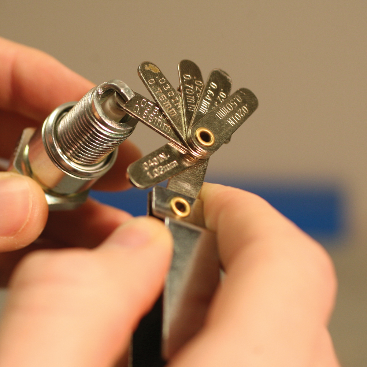 A full assortment of metric and imperial feeler gauges, complete with brush, file and spark plug electrode adjustment tool.