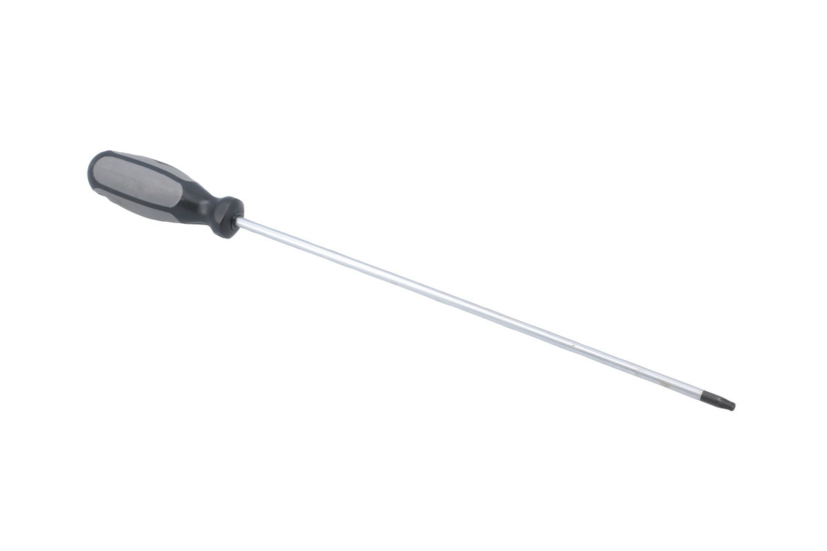 Long Star* screwdriver with T27 tip, with soft grip handle, and magnetic tips, for hard to reach fasteners.