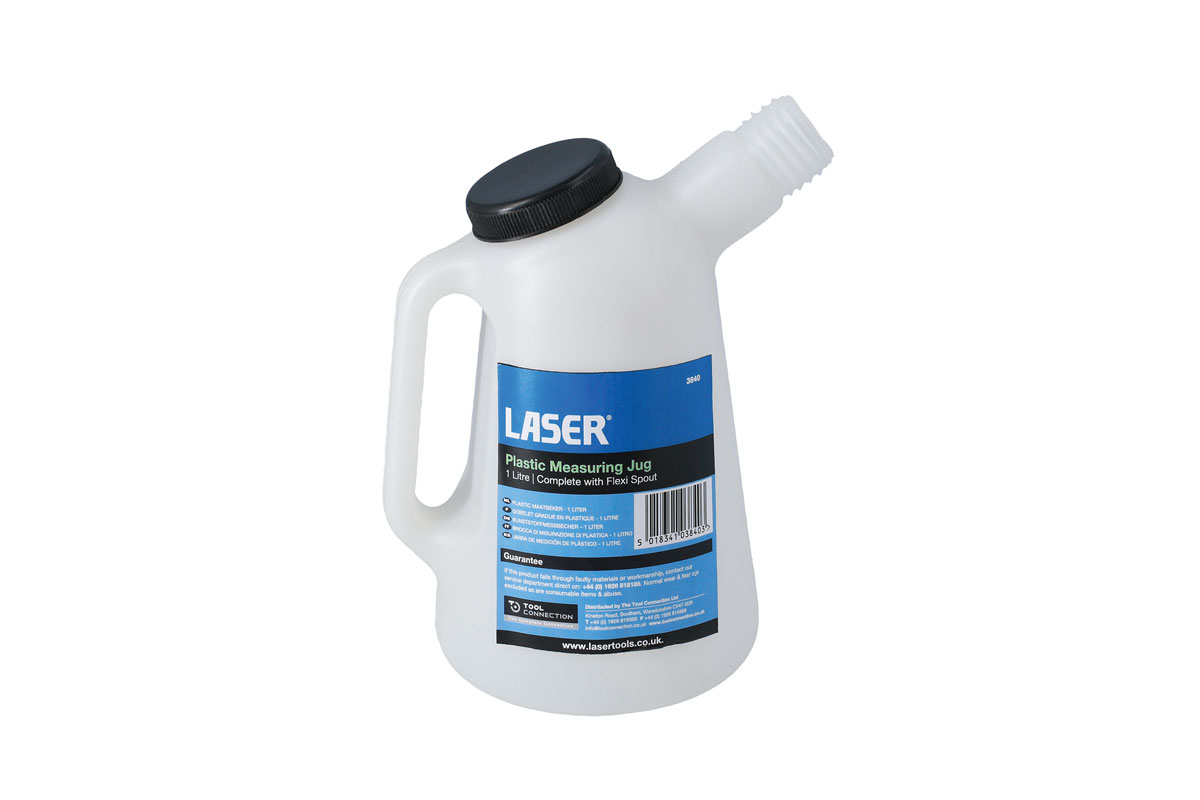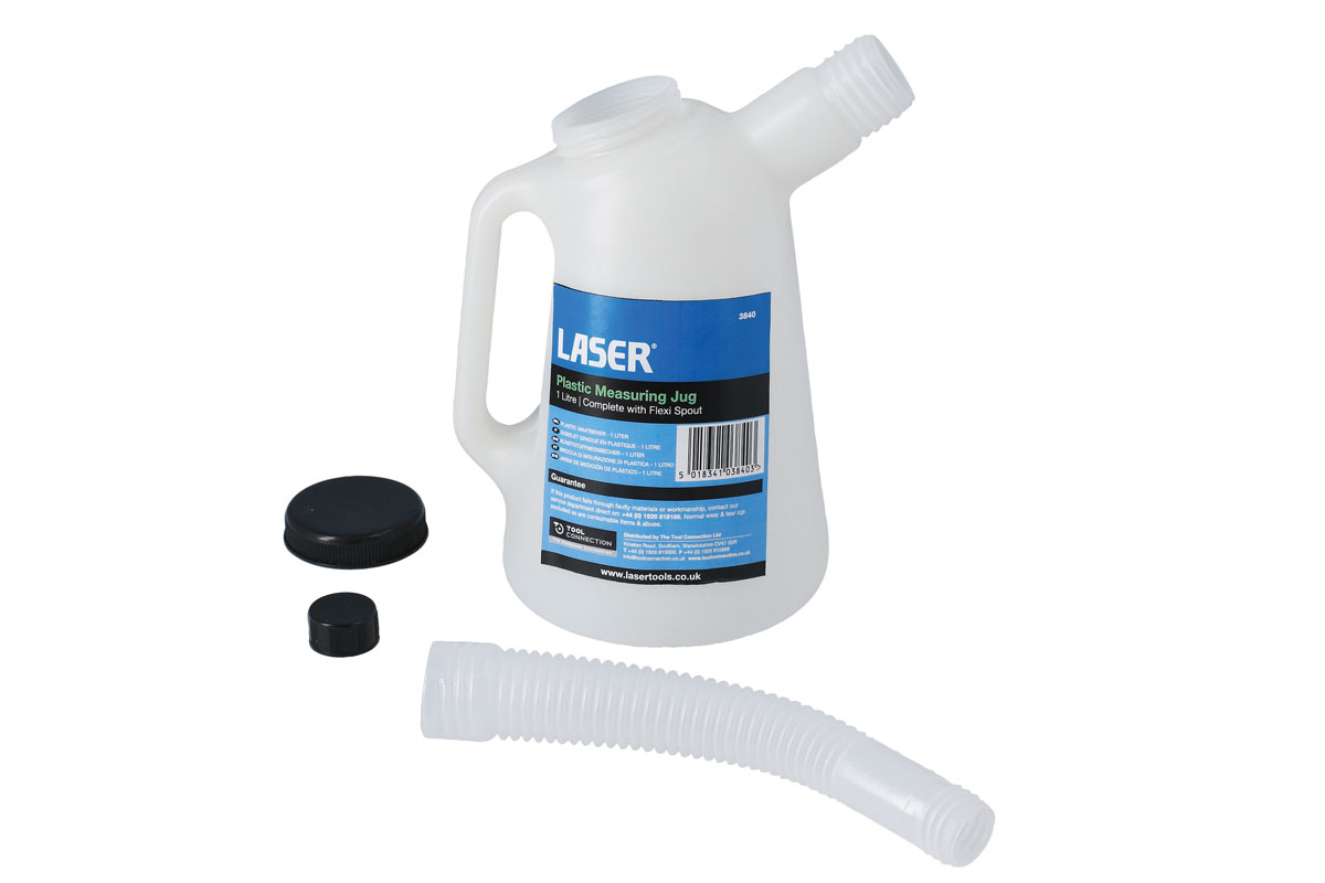 Suitable for all types of fluids, including petrol and diesel, this 1L measuring jug with flexible spout comes with caps to avoid spillage or contamination and features metric and US quart measurements.