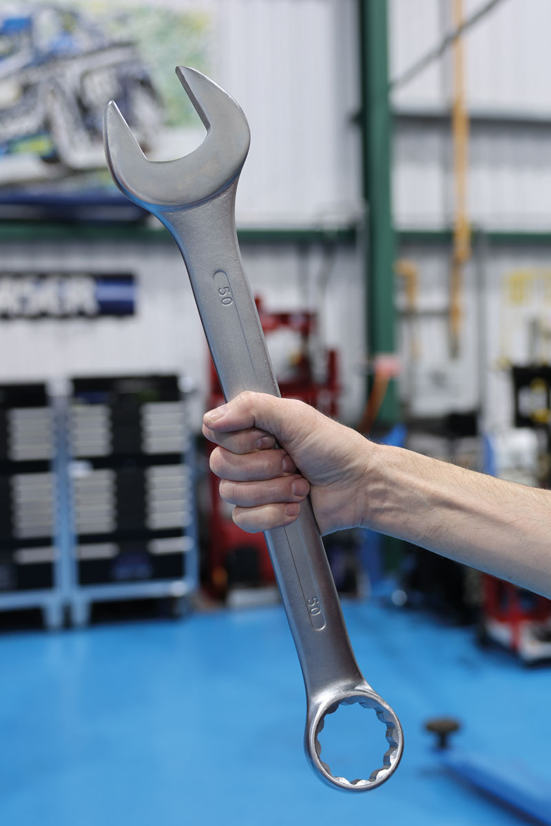 Heavy duty combination spanner set, with 6 sizes from 34mm up to 50mm.