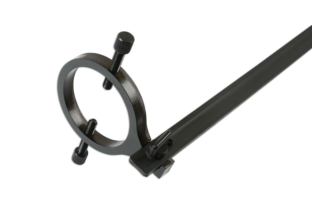 Designed in the UK by Laser Tools, (part no: 5267) allows the user to easily compress the internal spring of a motorcycle fork. This enables access to the fork top fixings and thus allows further access to the fork internal components.