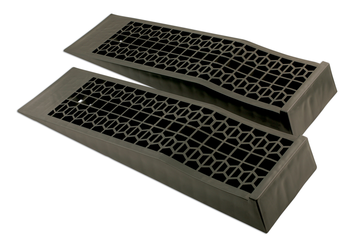 These low rise car ramps are intended for use on lowered, sports, and race cars to allow for access for a trolley jack. The honeycomb surface provides grip and prevents a build up of moisture under the tyres, this also makes them lightweight, easy to store. They are also ideal for using to help get a car up and over a high curb.