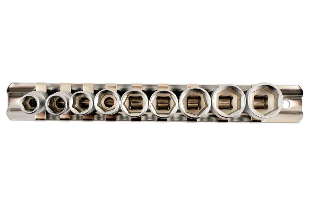 The sockets are manufactured from chrome vanadium and packed on a socket rail.