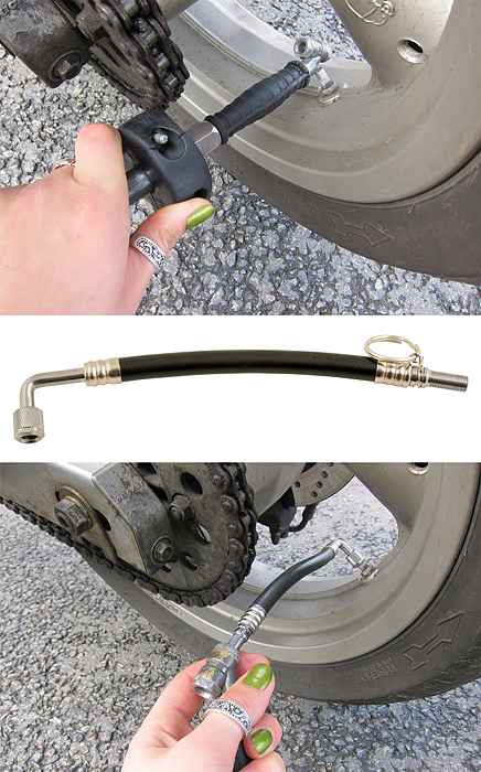 - Allows access to tyre valves on many motorcycles - particularly the rear wheel where the chain and guard restrict access.