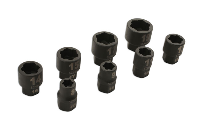 - Löser für beschädigte Muttern/Schrauben, 3/8"-Antrieb, 8-teilig