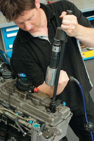 For removing diesel injectors, a full range of adaptors is available to suit most injectors fitted to modern cars. Once the extractor is screwed on to the injector, and the air hammer connected, the powerful impact and vibration will help extract the most stubborn components. The Laser Tools air hammer (part no 6031) is the ideal partner for the new extractor.