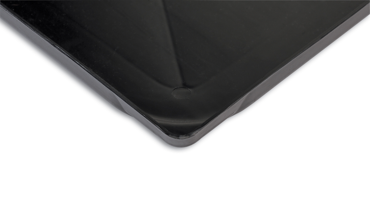 - Low profile, designed to fit under vehicles, protects floors from oil drips.