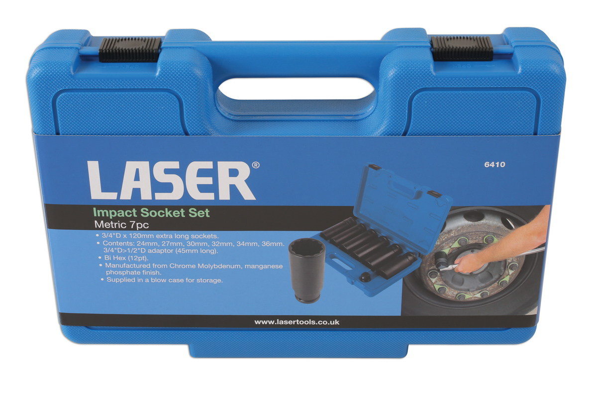 Listening to customer feedback and specific requests from HGV and light commercial customers, Laser Tools has recently introduced a range of extra long wheel nut sockets for these vehicles. Manufactured in high quality chrome molybdenum these sockets (part numbers 6213 – 6218), are 400mm long for extra access. All are ¾" drive, the sizes are 24mm, 27mm, 30mm, 32mm, 33mm, 36mm and supplied in black phosphate finish for longer life.
