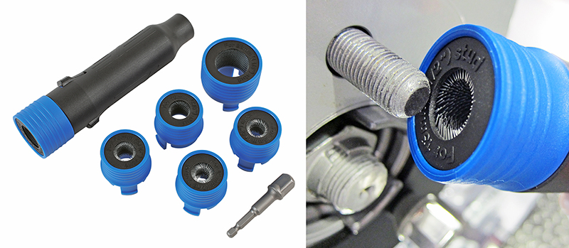 Wheel stud cleaning tool set offers a quick and easy solution for cleaning dirt, corrosion and grease from wheel studs before refitting the wheels and wheel nuts.