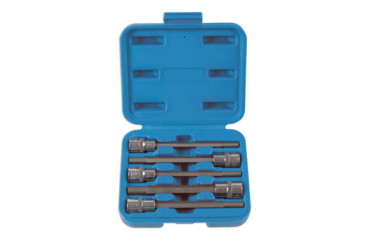 Een set lange dopsleutels (127 mm) met Star*-profiel, ideaal voor gebruik op moeilijk bereikbare plekken.