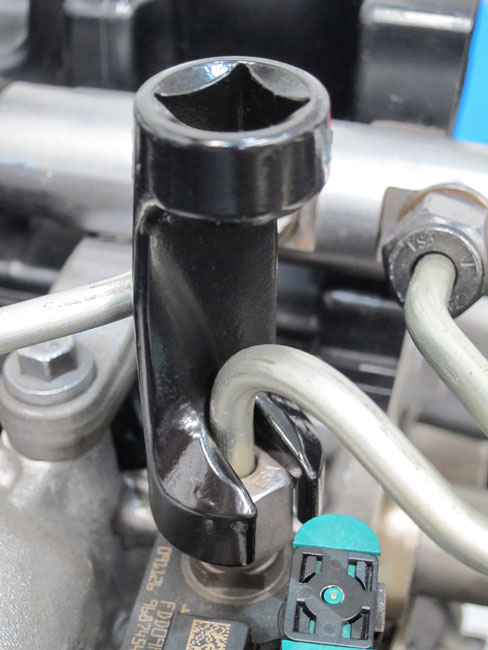Bi-Hex, cutaway fuel line sockets in small sizes for use in tight areas.