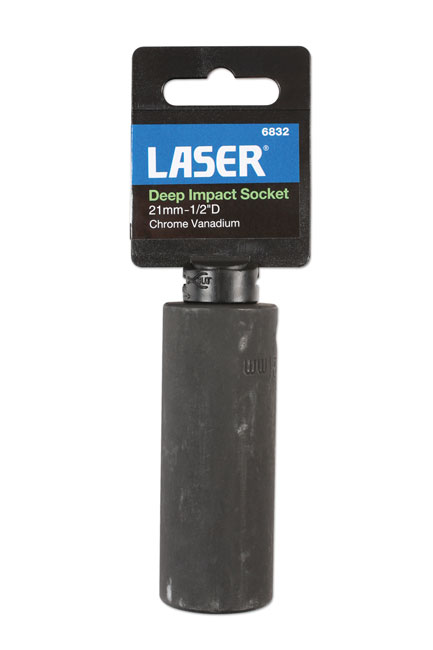 Deep 21mm single Hex 1/2"D impact socket. Part of a range of loose deep sockets from 10mm to 35mm.