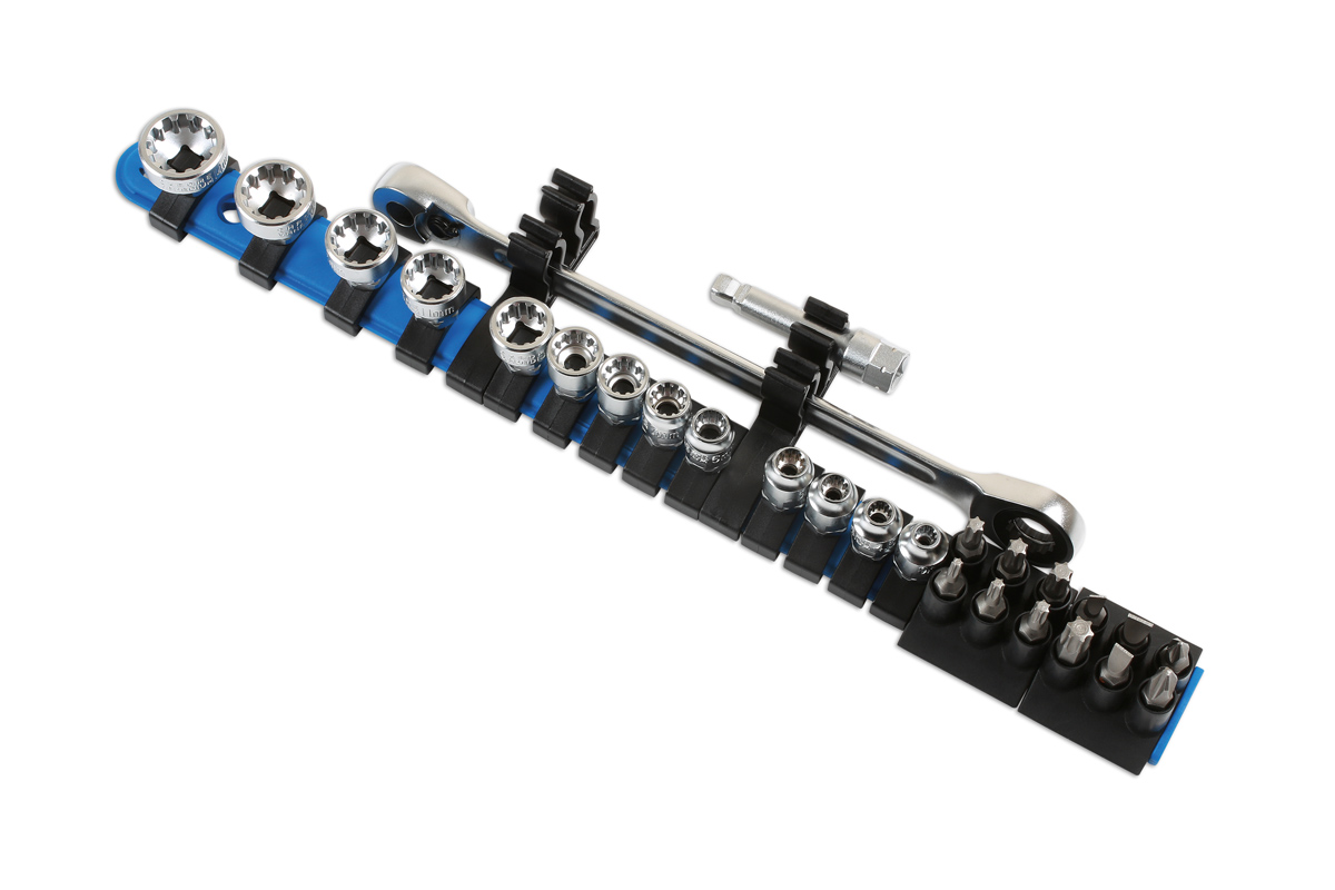 - 13x flache Alldrive-Steckschlüssel: 4 mm, 4,5 mm, 5 mm, 5,5 mm, 6 mm, 7 mm, 8 mm, 9 mm, 10 mm, 11 mm, 12 mm, 13 mm, 14 mm