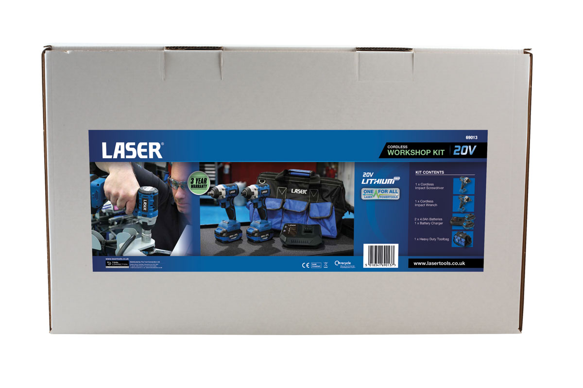 A set of cordless power tools and accessories specifically selected for workshop use and ideal for all types of fastener removal. Featuring the two most popular and productive tools for use within the workshop environment - a cordless impact wrench for use with standard or deep 1/2”D impact sockets and a cordless impact screwdriver for use with 1/4”Hex quick chuck impact bits. Also supplied are two 20V 4.0Ah batteries allowing professional users to run one whilst one charges giving uninterrupted use, a 230V 4 amp mains battery charger with BS (UK) plug and heavy duty storage bag. CE & RoHS compliant.