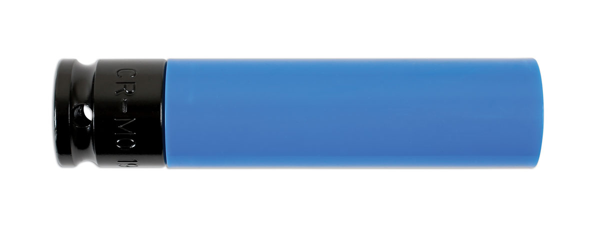 Extra long wheel nut socket manufactured from Chrome Molybdenum with protective sleeve 19mm x 130mm 1/2"D