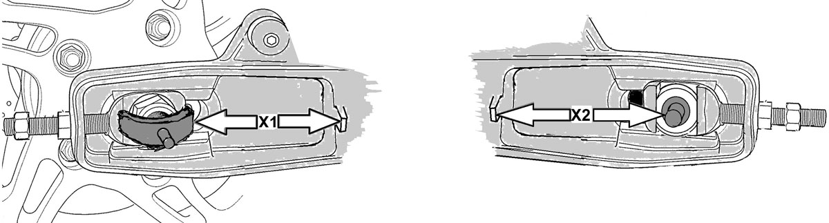 - Das Werkzeug geht durch die Radachse und bietet einen Bezugspunkt auf beiden Seiten der Schwinge, um die richtigen Messungen vornehmen zu können.