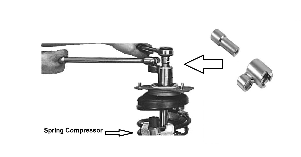 - WARNING: Ensure the road spring has been compressed using a suitable spring compressor BEFORE removing top nut.