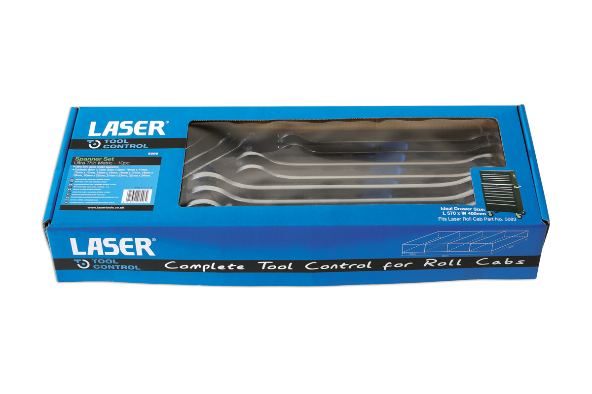 Set 6996 includes all the above ten spanner sizes and additionally they are presented in a very practical machine-cut EVA foam tray that is designed to fit in a tool box or roll-cab drawer, keeping the tools safe and always ready to hand.