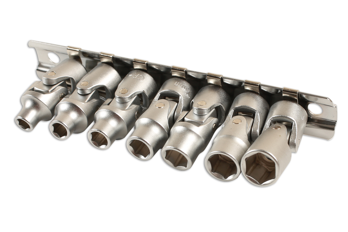 Jeu de douilles articulées à carré de 1/4''. En chrome-vanadium à finition miroir. Tailles 5/5,5/6/7/8/9/10 mm