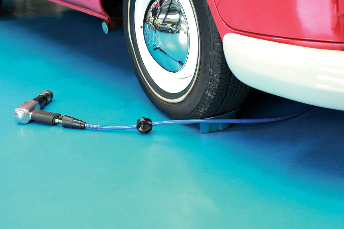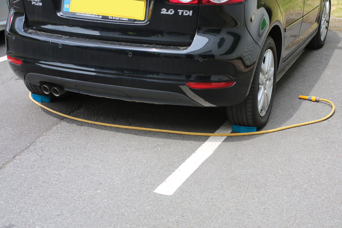 - Verhindert, dass sich ein Luft- oder Wasserschlauch unter den Autorädern verfängt