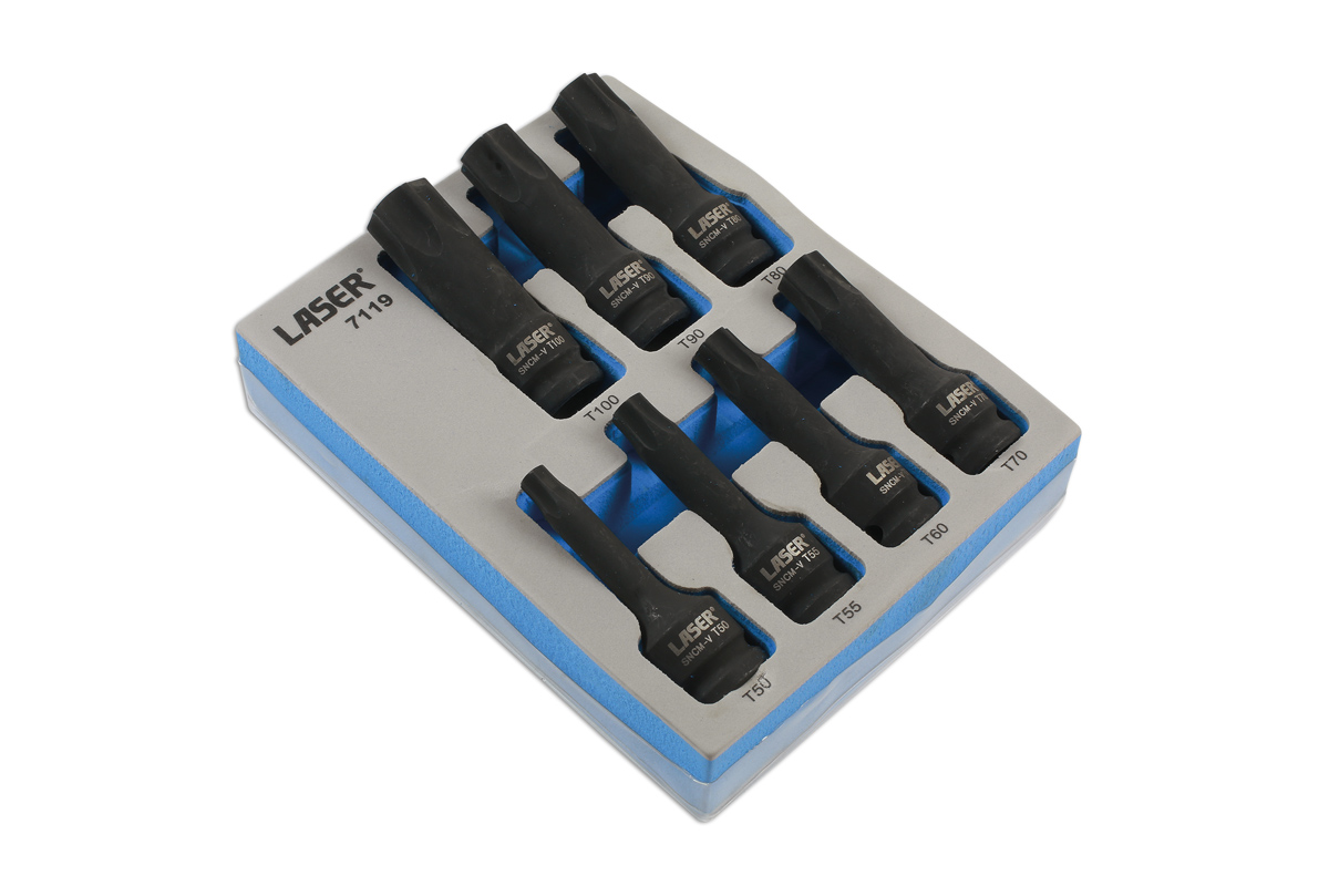 Jeu d'embouts Torx 7 pièces à carré de 1/2" T50, T55, T60, T70, T80, T90, T100