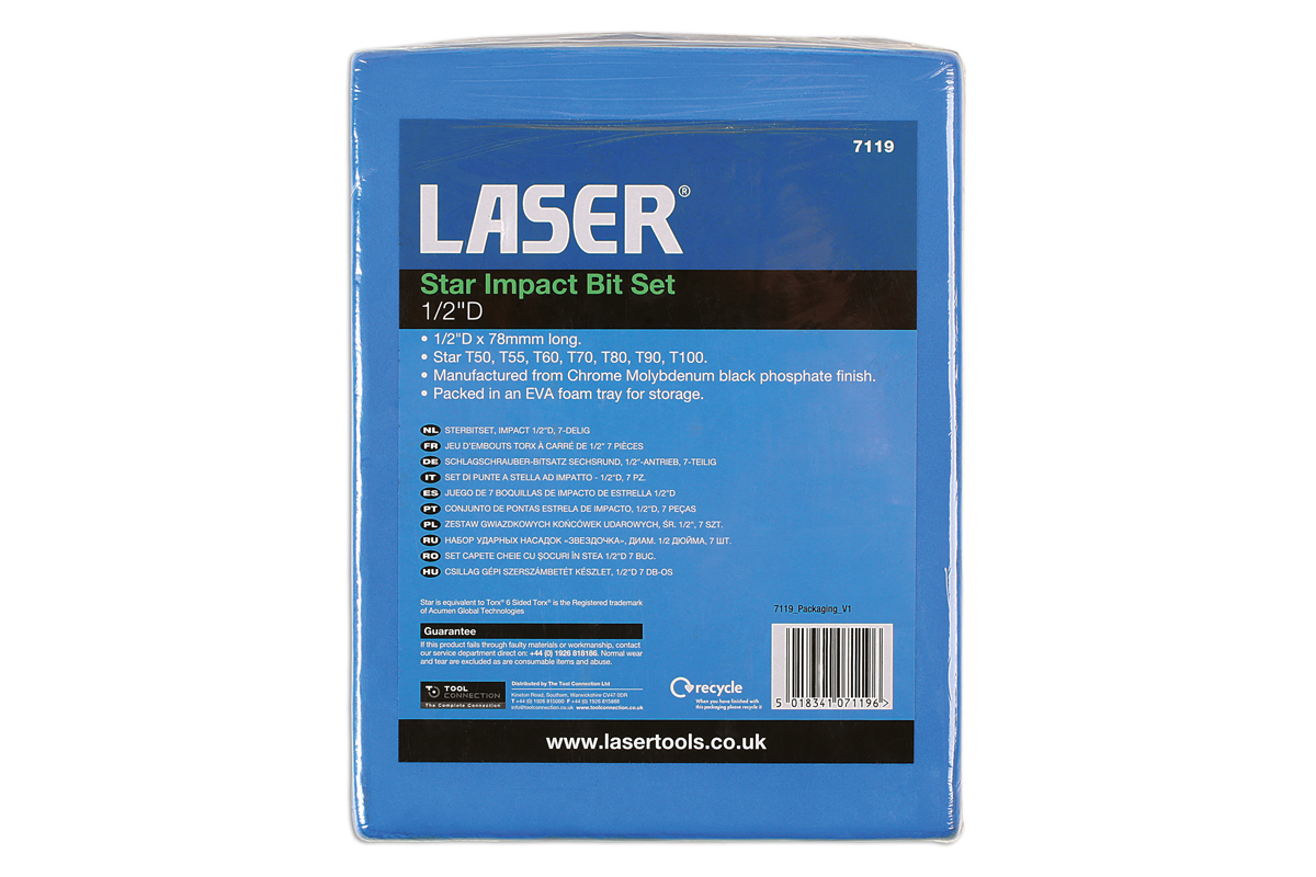 7119 Long Impact Star Socket Bit Set 1/2"D 7pc