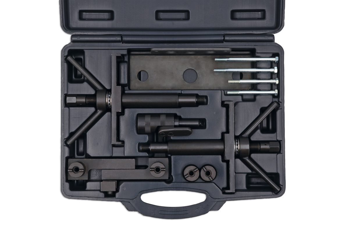 The 7127 is an engine timing and cylinder head rebuild kit for the popular Volvo 2.5 and Ford 2.5 ST petrol engines. It contains the tools required to align the crankshaft and camshafts, along with the tools needed to hold the camshafts in the top half of the cylinder head and the press tools required to fit the cam carrier, with cams, into the head making re-assembly much easier and faster.