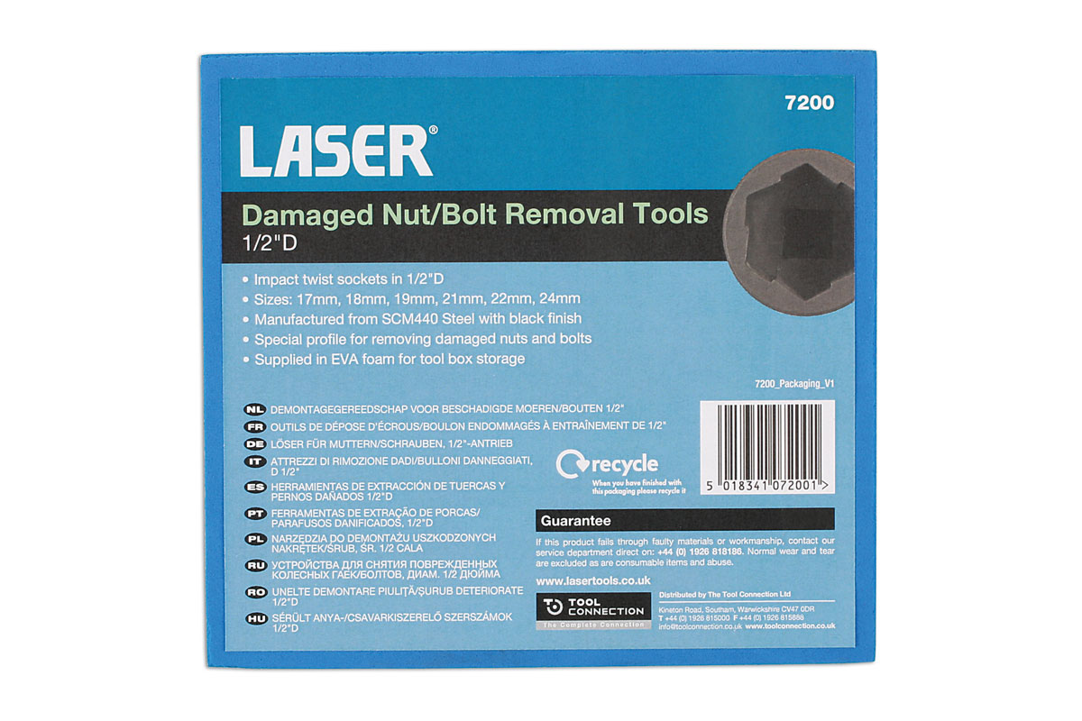 7200 Damaged Nut/Bolt Remover Tools 1/2"D 6pc