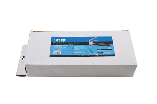 Heavy duty pistol grip grease gun with variable stroke. Complete with 225mm flexible hose and 4 jaw coupler.