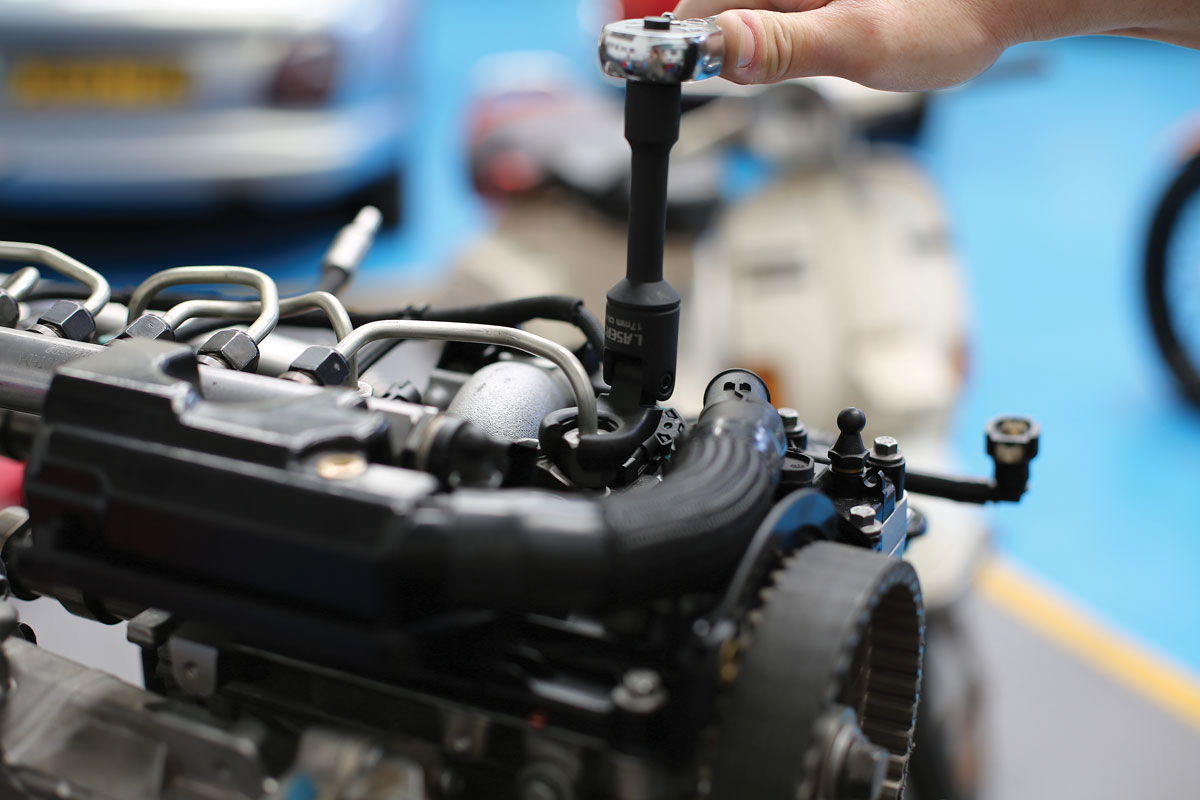 Sleutelset voor dieselinjector met flexibele kop voor meer gebruiksgemak.