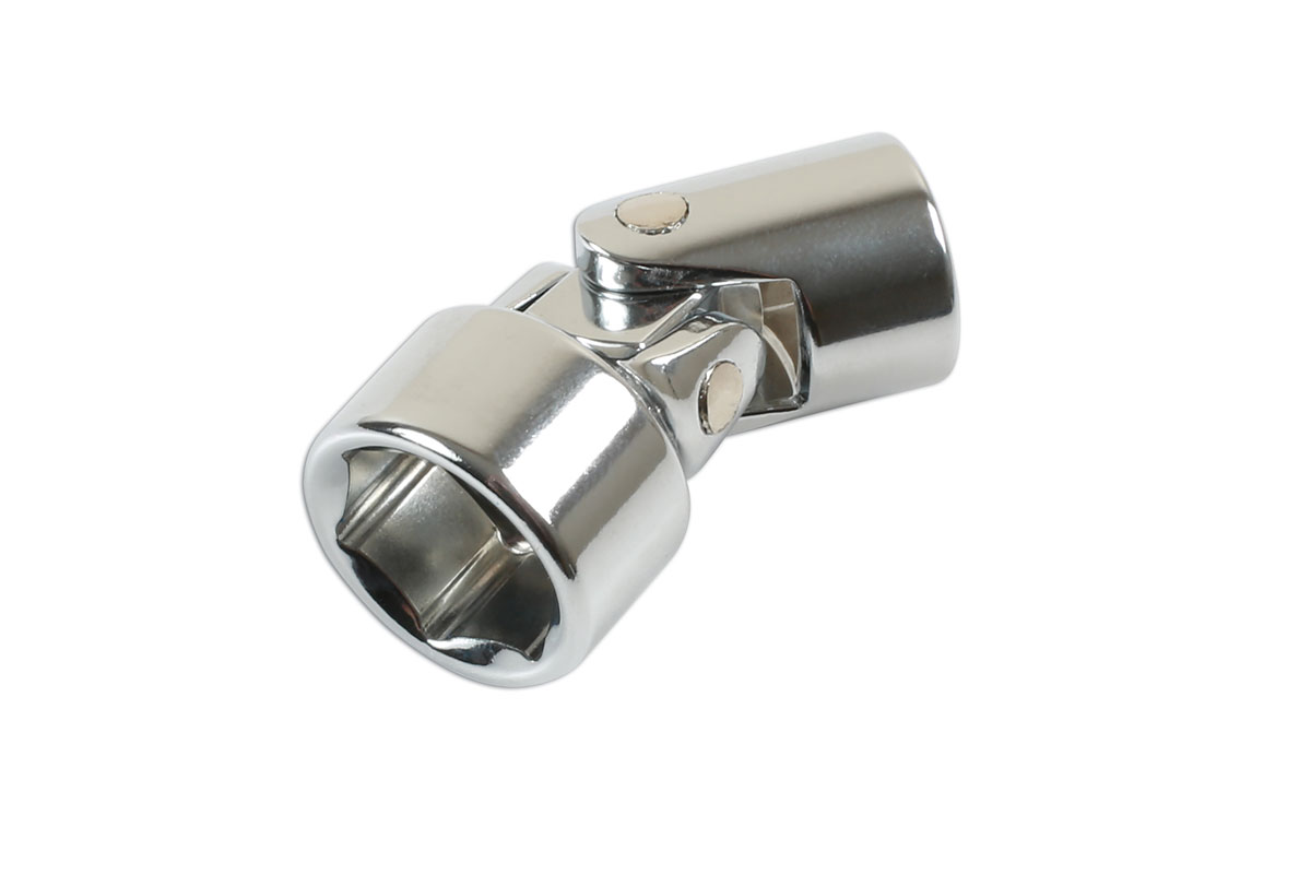 A set of 3/8"D universal joint sockets with single Hex profile, ideal for accessing restricted spaces. A quality set made from satin finish chrome vanadium in a range of useful sizes from 10mm to 19mm. The spring-loaded universal joint head rotates a full 360° so that it can adjust to the best angle and the set are presented in an EVA foam tray for convenient tool drawer storage.