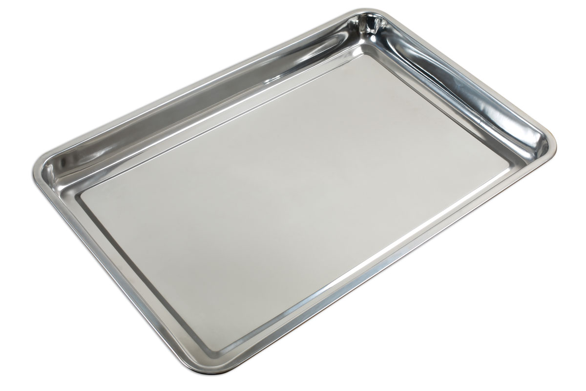 Large heavy-duty drip tray manufactured from 2mm thick pressed stainless steel, embossed with the Laser logo and a fully polished finish. Exceptionally tough and strong the tray has excellent resistance to rust, stains, chemicals and corrosion and the base has a 30mm wide channel round the edge for easier pouring. The low profile tray is just 48mm deep, slim enough to slip under the lowest sports car and can also be used with oil absorption pads, please see Part nos. 5712 & 5713. Easy to clean, the tray can tolerate high temperatures so it can be sterilised with heat, making it also suitable for home and kitchen use.