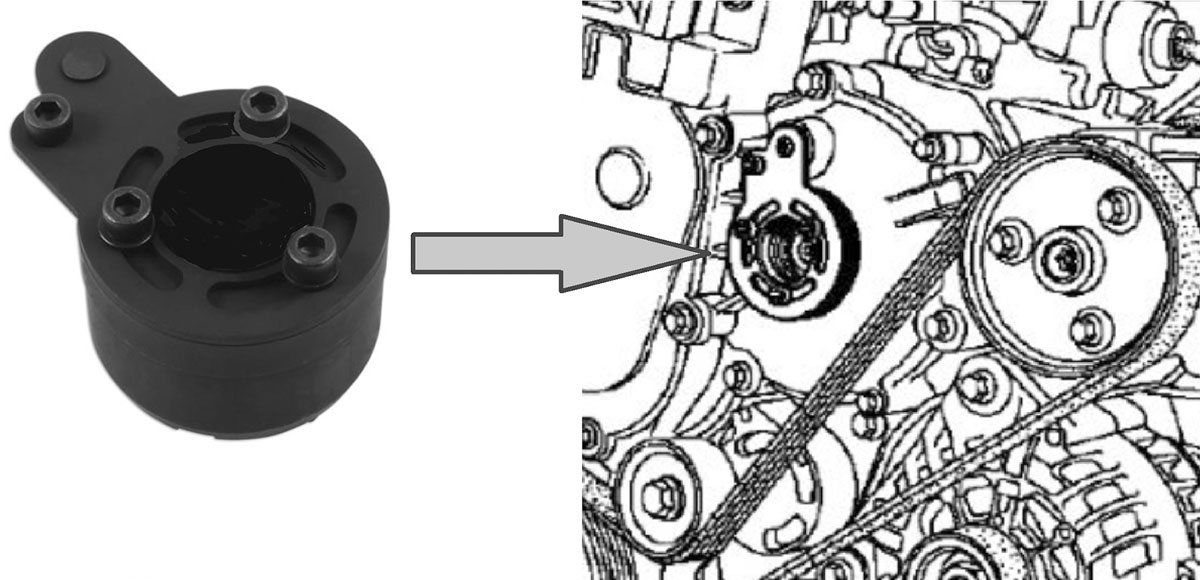 Dient bei 2,5-/2,2-l-Renault-Dieselmotoren, die in Renault-, Vauxhall- und Nissan-Transportern eingesetzt werden, zur Demontage des Ritzels der Dieselpumpe, damit die Treibstoffpumpe ausgebaut werden kann, ohne den Steuerriemen zu stören.
