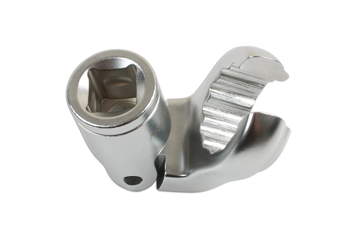 Flexible crows foot 1/2"D socket wrench provides greater access than traditional fixed heads.