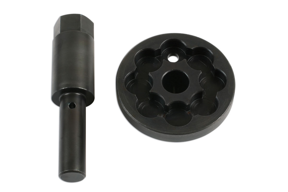 Jeu d'outils de rotation du vilebrequin qui combine les applications de 2 outils OEM VAG en un seul kit pour pouvoir tourner le vilebrequin en toute sécurité sur les moteurs à essence Audi V6 et V8