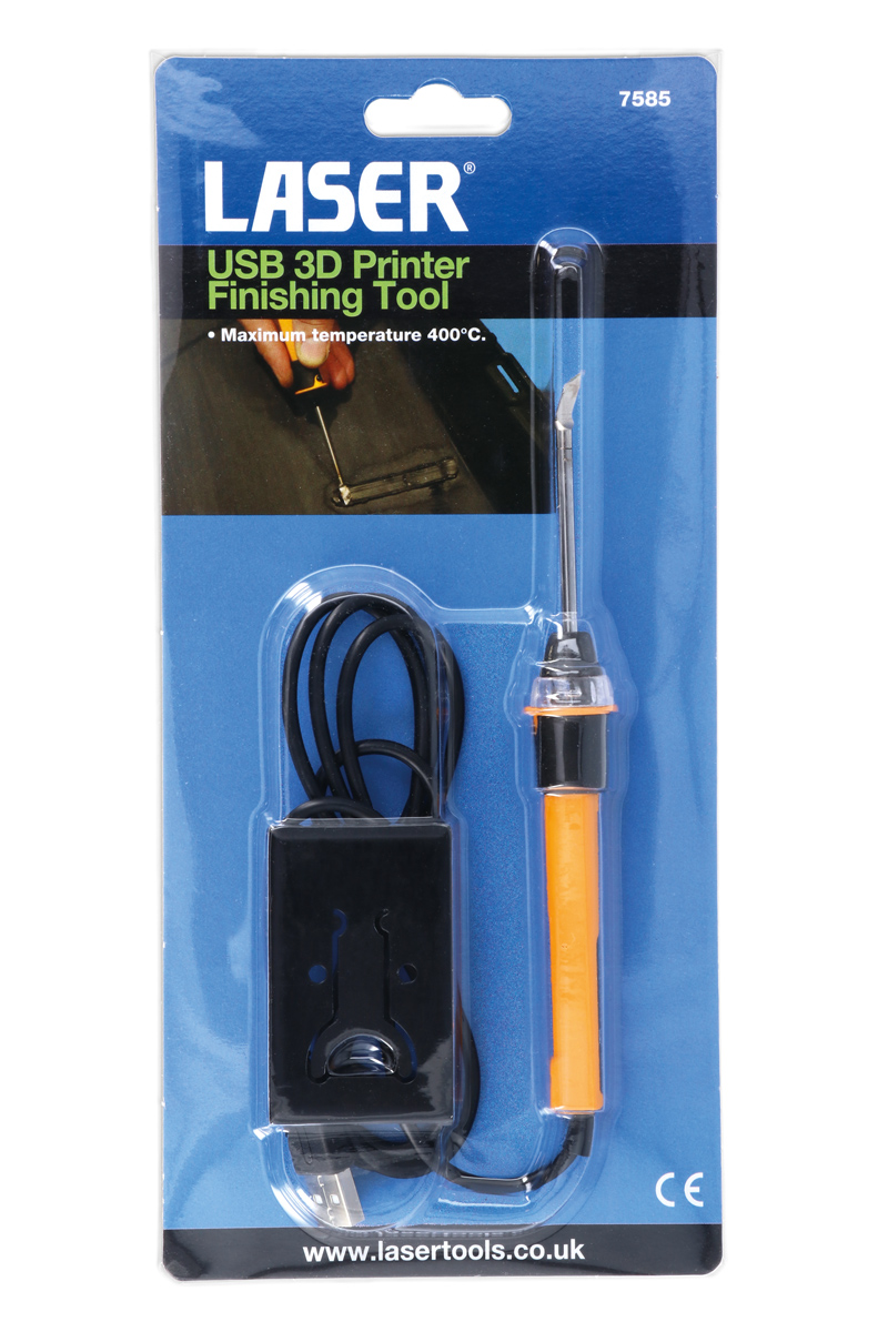 Lightweight plastic finishing tool designed to smooth off any rough edges or excess material on thermoplastic materials during a plastic repair on such items as bumpers, headlight housings, inner wing liners, splash shields, fan shrouds, petrol tanks, interior and under bonnet trims. USB-powered it features a 1.2m lead and is supplied with a folding stand. Also suitable for finishing 3D printed items and components.
