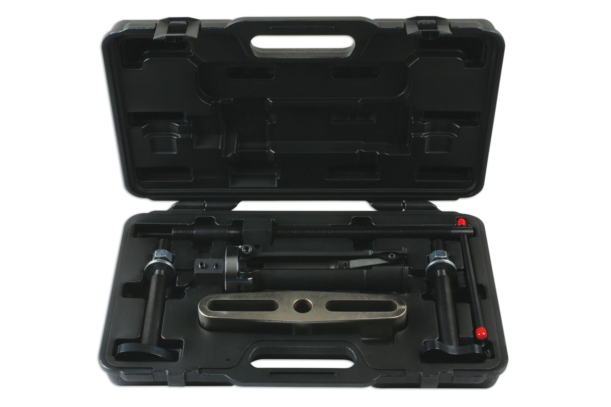 Designed specifically for removing the cylinder block liners from "wet liner" type engine blocks. Also known as 'engine cylinder sleeve puller' or 'wet sleeve extractor'.