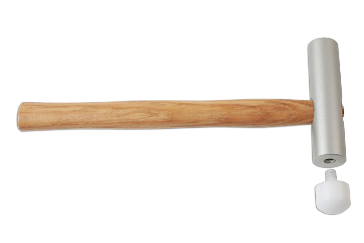 - Aluminium hammer with screw-in, interchangeable head.