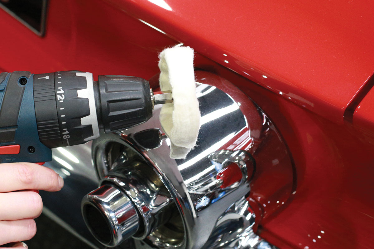 - 3 abgesteppte Polierscheiben: 50 mm, 75 mm, 100 mm plus Gewindespindel.