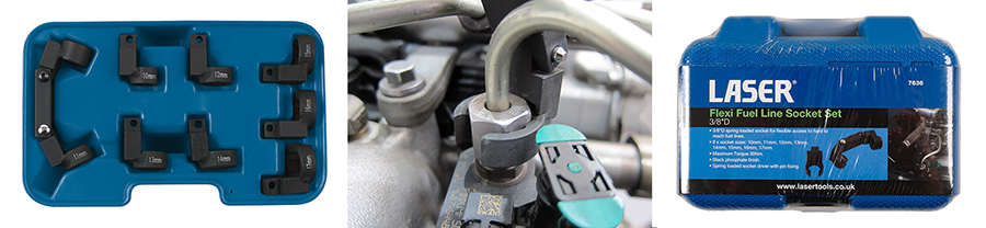 This new socket set from Laser Tools (part number 7636) is specifically designed to offer improved access to hard to reach fuel line connections. For example, injector connectors can be buried under a maze of pipework and fittings and it can be a major task to get a positive grip onto the hex whether tightening or loosening off.