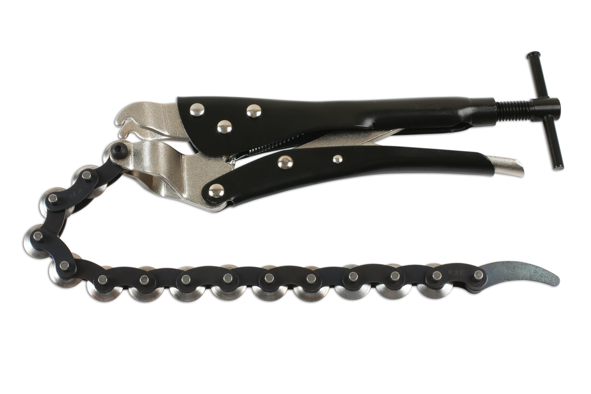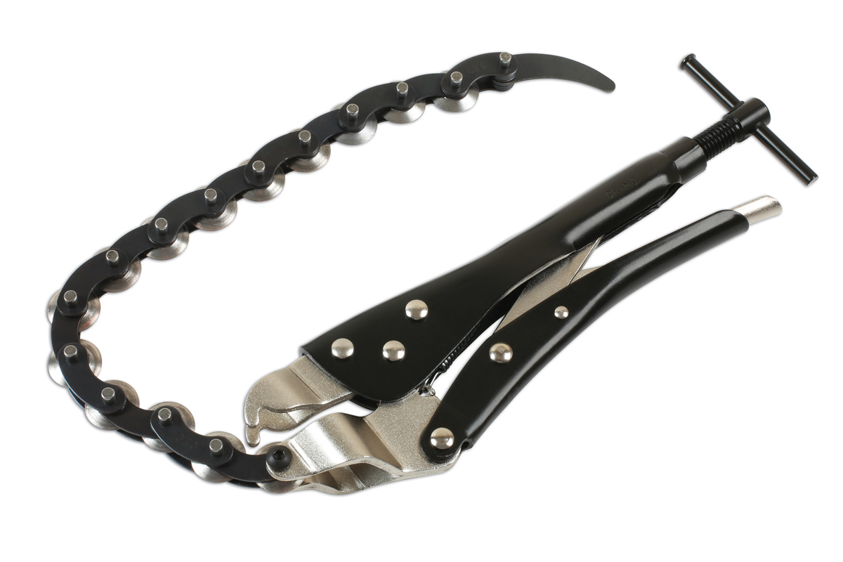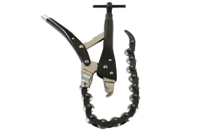 A robust chain pipe cutter with handle, for cutting pipe up to 2.5mm wall thickness.