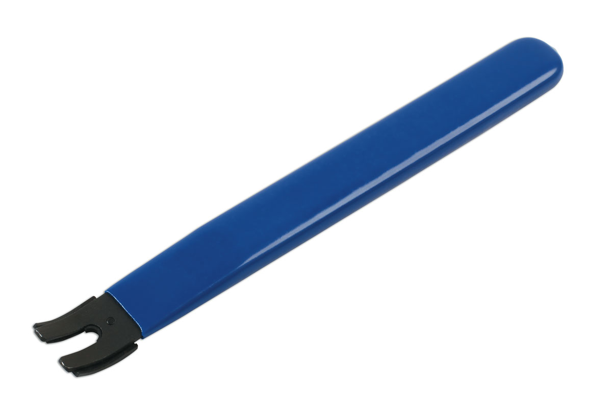 The trim clip remover is 165mm long and made from S45C carbon steel which offers excellent strength and good surface hardness and wear resistance. The handle is soft-dipped for comfort and grip.