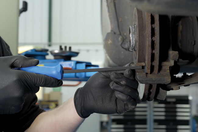 The caliper carrier file: this narrow 10 millimetre-wide file quickly removes corrosion and cleans up the caliper carrier areas restoring free movement of the caliper.