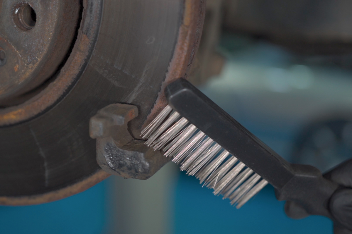 • Eine Stahl- und eine Messingbürste zum Entfernen von Bremsstaub von Aluminium- und Stahlbremssätteln.