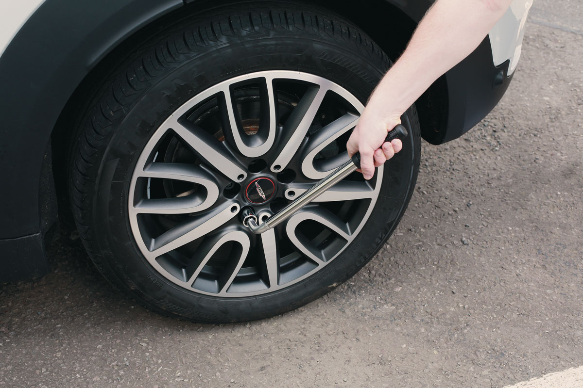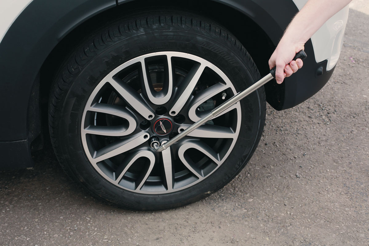 - Mit dem ausziehbaren Teleskop-Radschlüssel lassen sich festgezogene Radmuttern problemlos lösen.