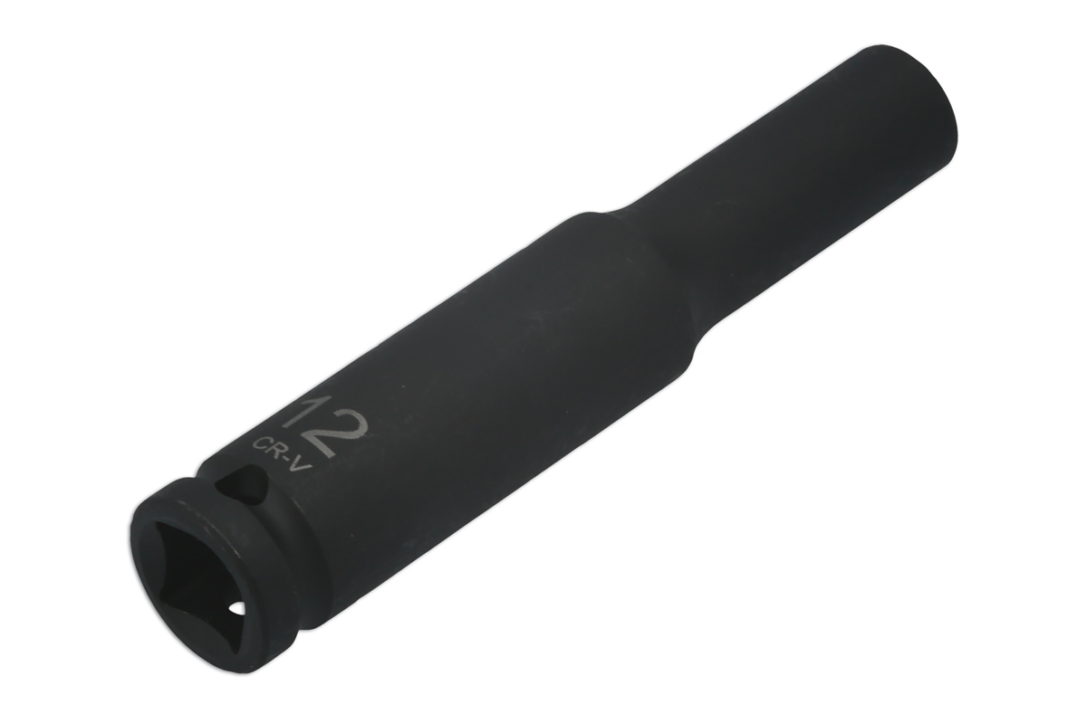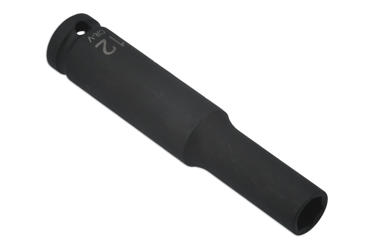 • Douille à impact extra-longue de 12 mm, conçue pour une utilisation avec des pistolets à impact pneumatiques/électriques ou des tournevis à impact.