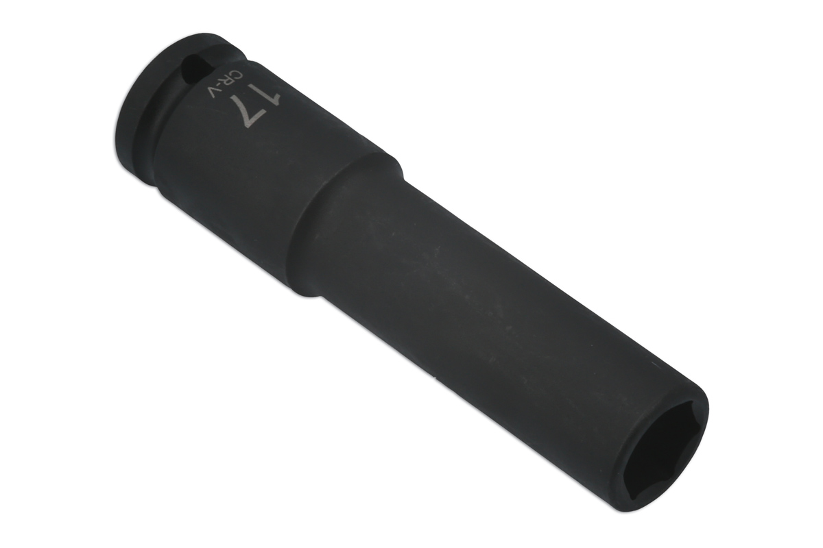 • Douille à impact extra-longue de 17 mm, conçue pour une utilisation avec des pistolets à impact pneumatiques/électriques ou des tournevis à impact.